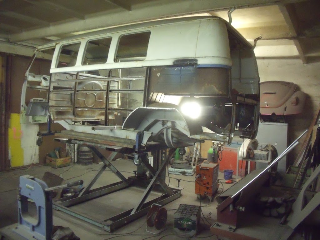 Happy new year… 2016… new year, new project, new tool Da der neu angekommene T1 selbst im Hauptrahmen verrostet ist haben wir uns für eine zweite Richtbank entschieden welche auch für länger andauerne Arbeiten verwendet werden kann.