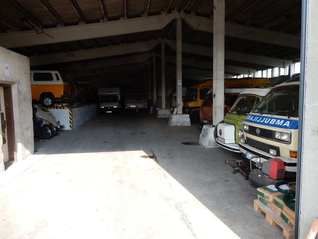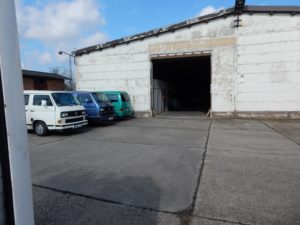 Als wir 2002 unsere Firma gründeten hing in Königsbrück an der Hauswand einer typoffenen KFZ-Werkstatt ein schwarzes, teilweise geplündertes, angerostetes also lieblos hergerichtetes Vorderteil eines Lufboxer T3. (auch wenn auf den Bildern ein Kühlergrill zu viel zu sehen ist) Nach der Entdeckung fragten wir ca. 10 Jahre lang immer wieder vergeblich beim Betreiber der Werkstatt nach ob wir nicht dieses als Werbeträger für unsere Bulliklinik haben könnten. Erfolglos. Erst als wir die Hoffnung schon längst aufgegeben hatten, kam der Hinweis, daß die besagte Werkstatt demnächst schießen würde und die erneute Nachfrage beim Betreiber, mit dem wir mittlerweile fast ein freundschaftliches Verhältnis hatten, brachte den Durchbruch bei der Änderung der Besitzverhältnisse. : Und so rückten wir 2015 im Mai aus, das Teil mit einem 7,5Tonner mit Ladekran zu bergen..