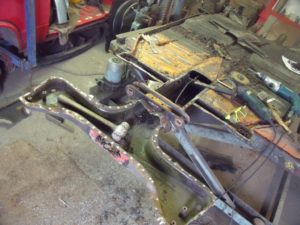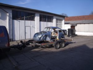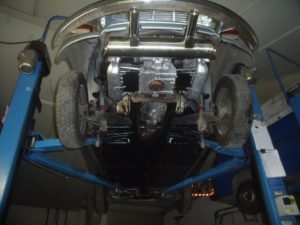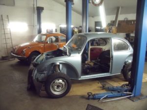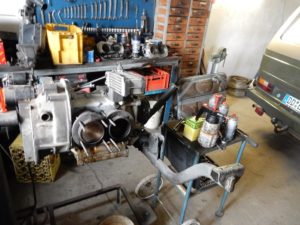 Das eine sehr gute Vorderachse aufgearbeitet wurde kann man oben gut erkennen; nebenbei wird der Motor auch noch teilüberholt. Mittlerweile ist der Wagen wieder so komplett wie der Kunde ihn zu uns gebracht hat, den Innenausbau möchte er dann selbst vollenden…