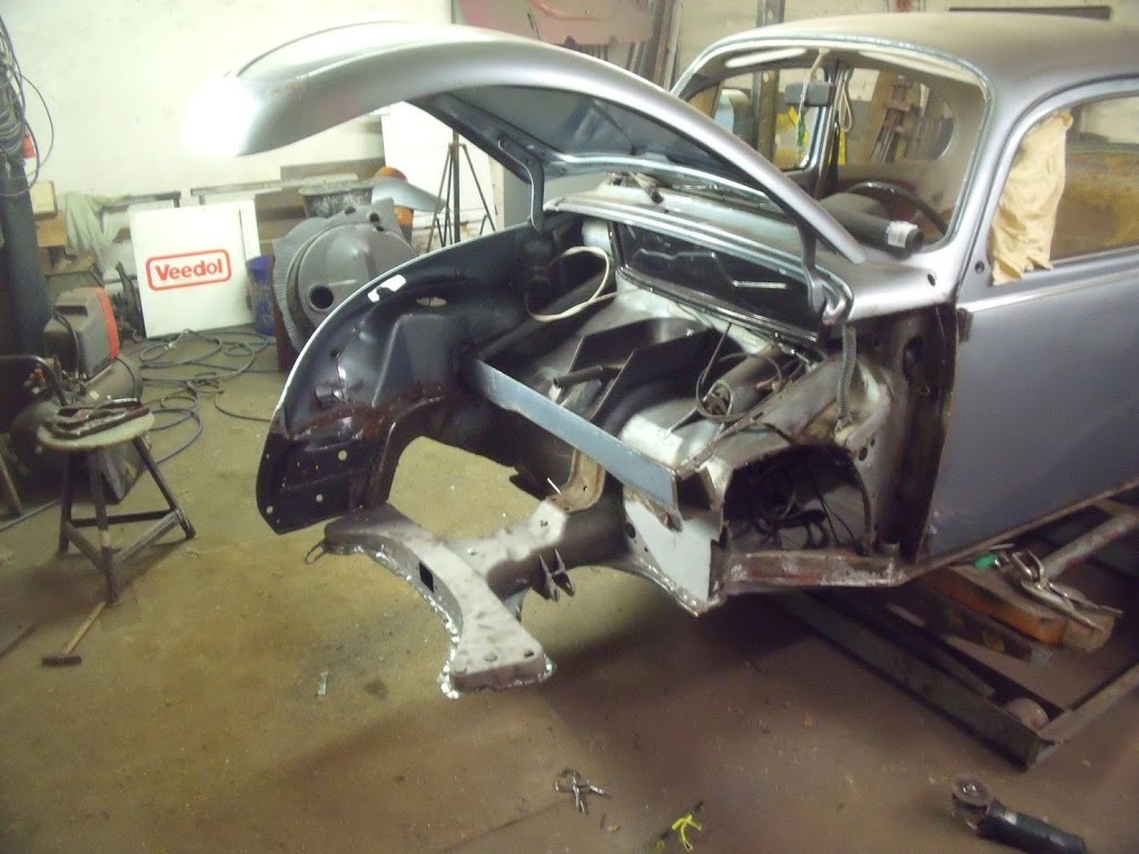 Das eine sehr gute Vorderachse aufgearbeitet wurde kann man oben gut erkennen; nebenbei wird der Motor auch noch teilüberholt. Mittlerweile ist der Wagen wieder so komplett wie der Kunde ihn zu uns gebracht hat, den Innenausbau möchte er dann selbst vollenden…